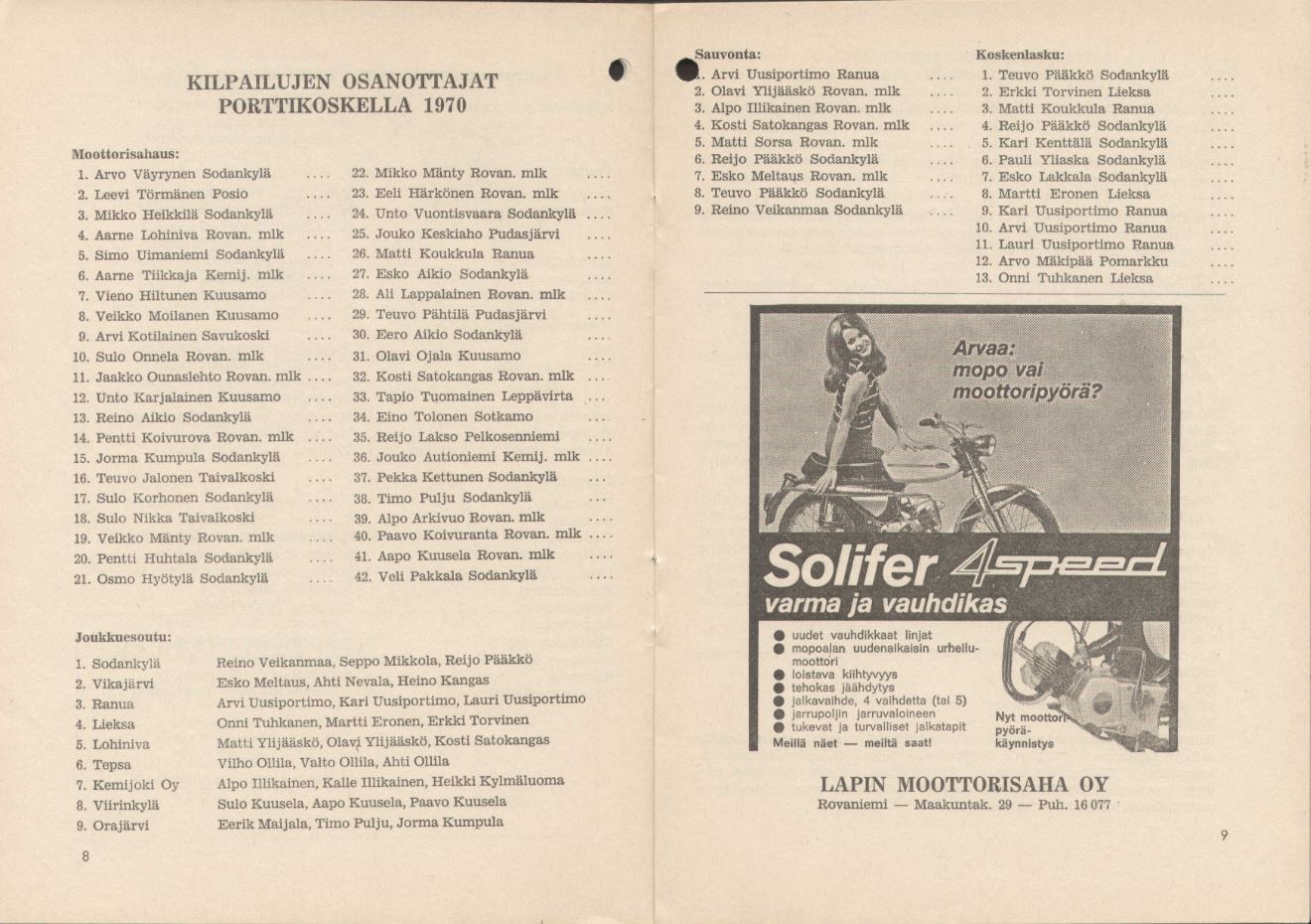 Tukkilaiskisat Sodankylä Porttikoski 11. -12.7.1970