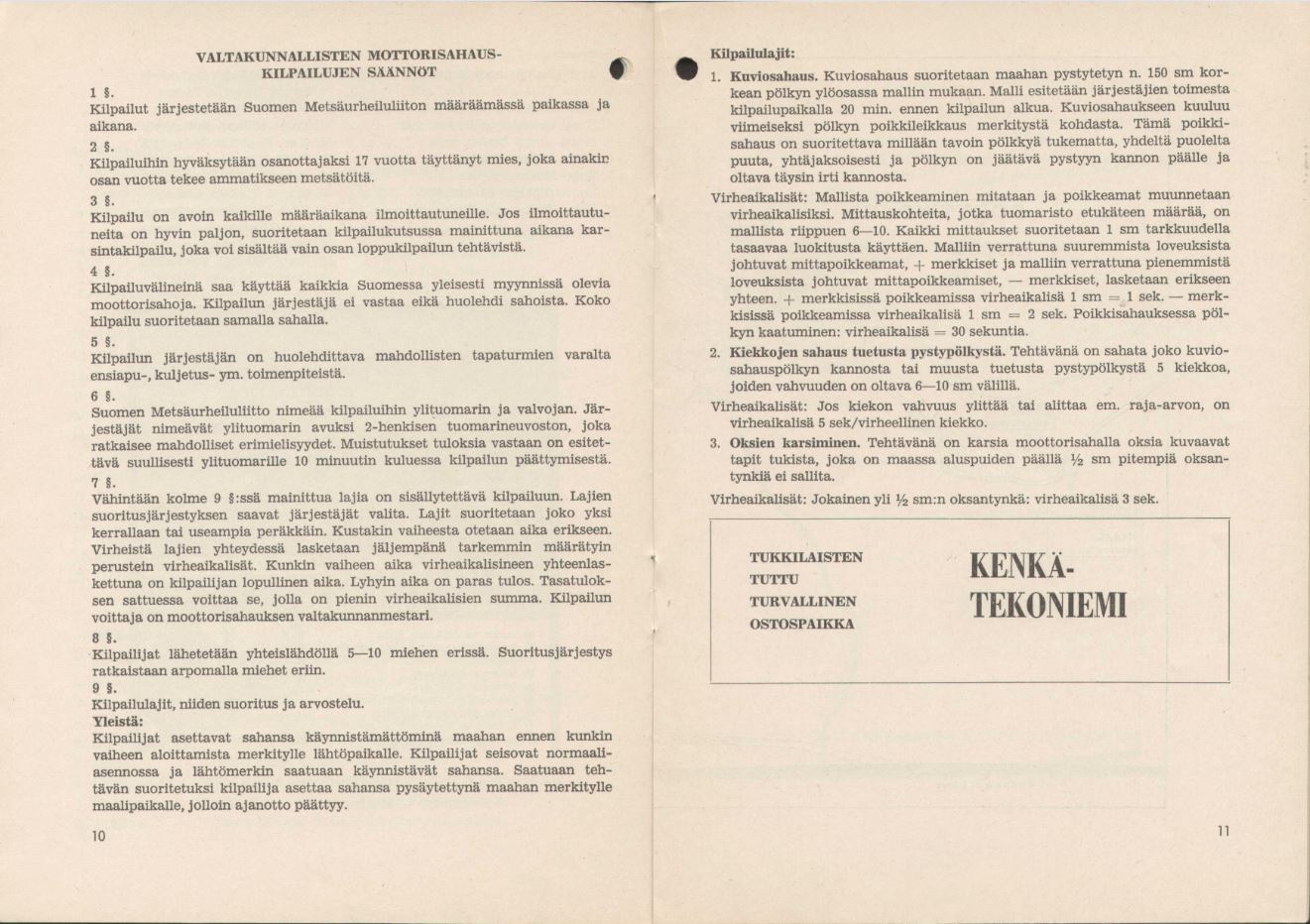 VALTAKUNNALLISTEN MOOTTORISAHAUSKILPAILUJEN SÄÄNNOT