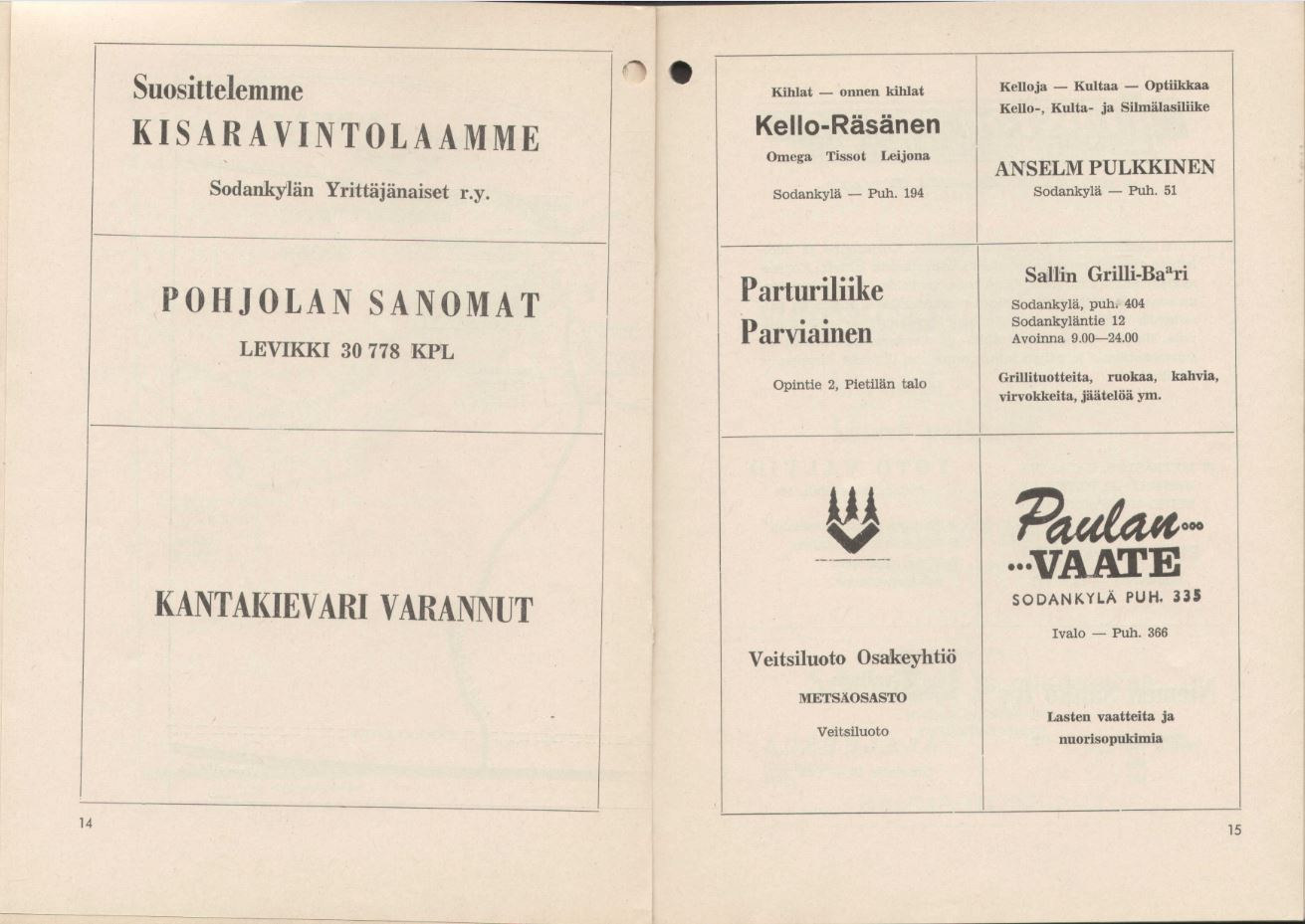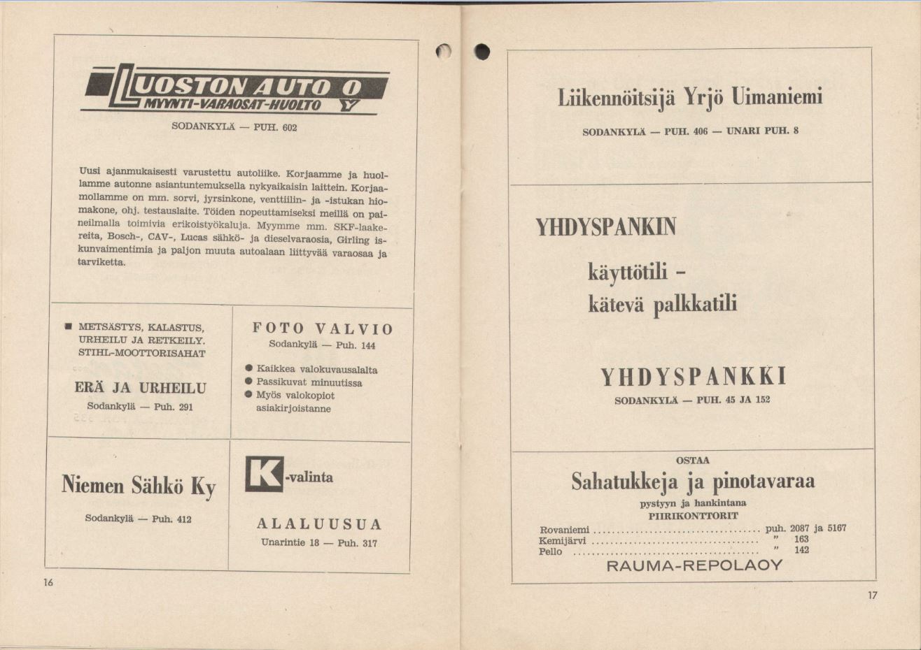 - Ravintola: Sodankylän Yrittäjänaiset ry.