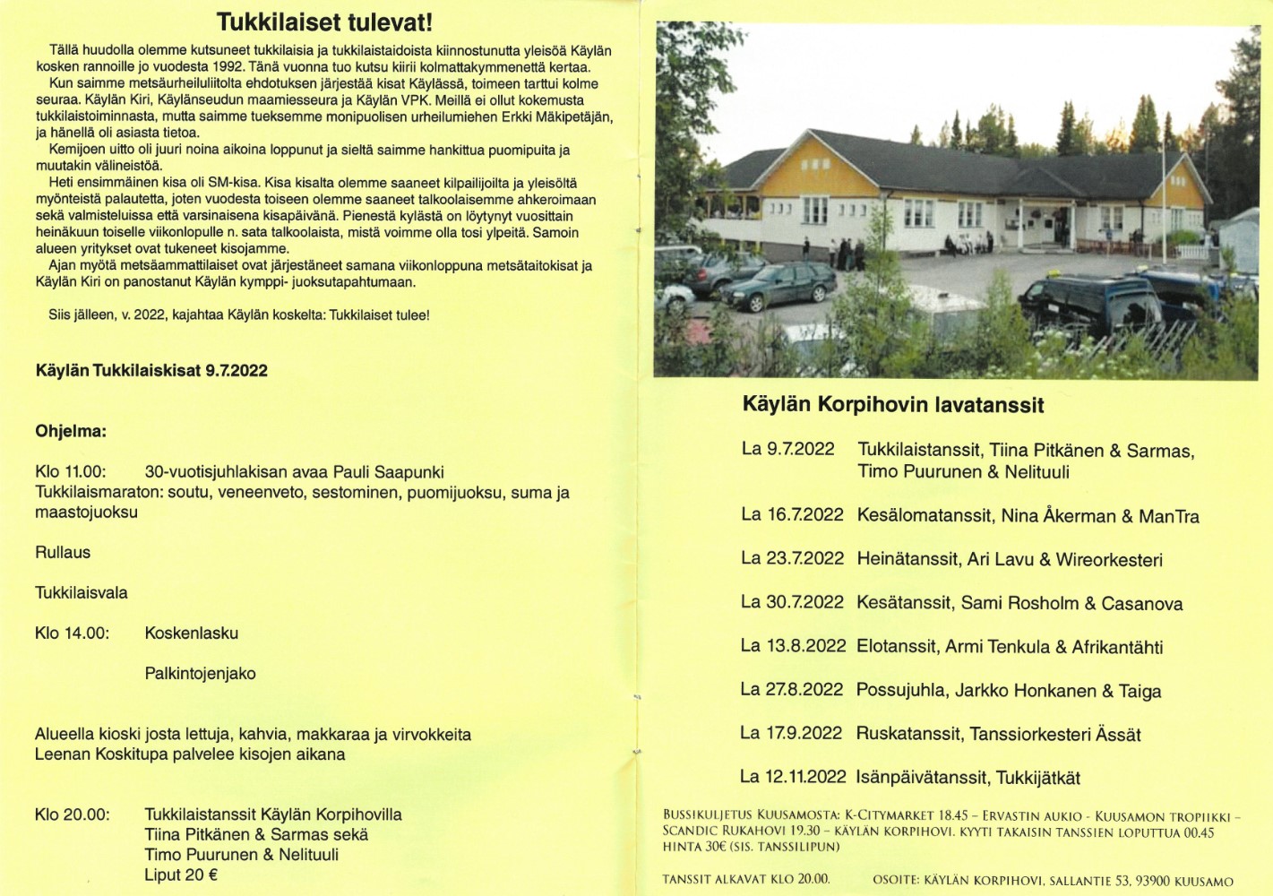 Siis jälleen, v. 2022, kajahtaa Käylän koskelta: Tukkilaiset tulee!