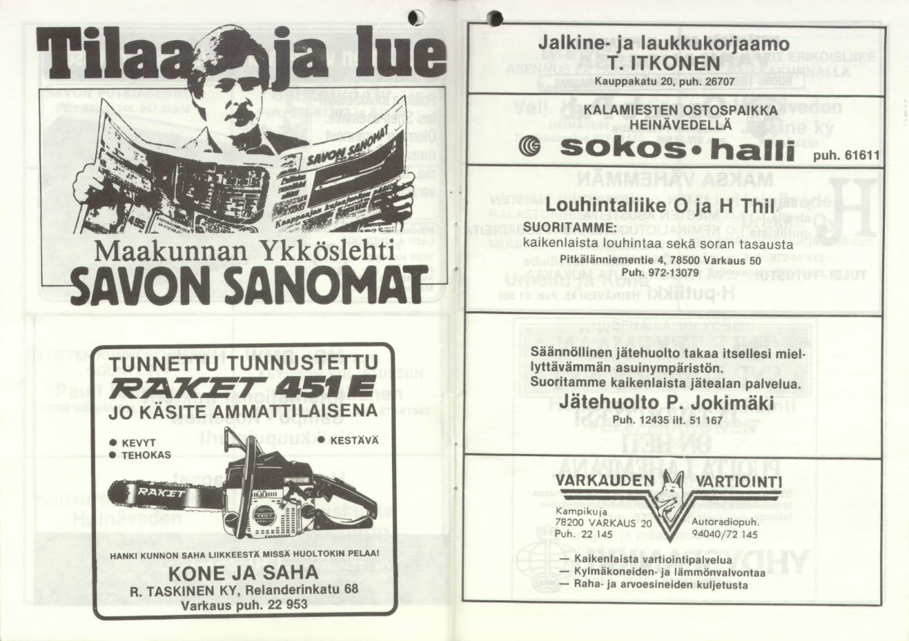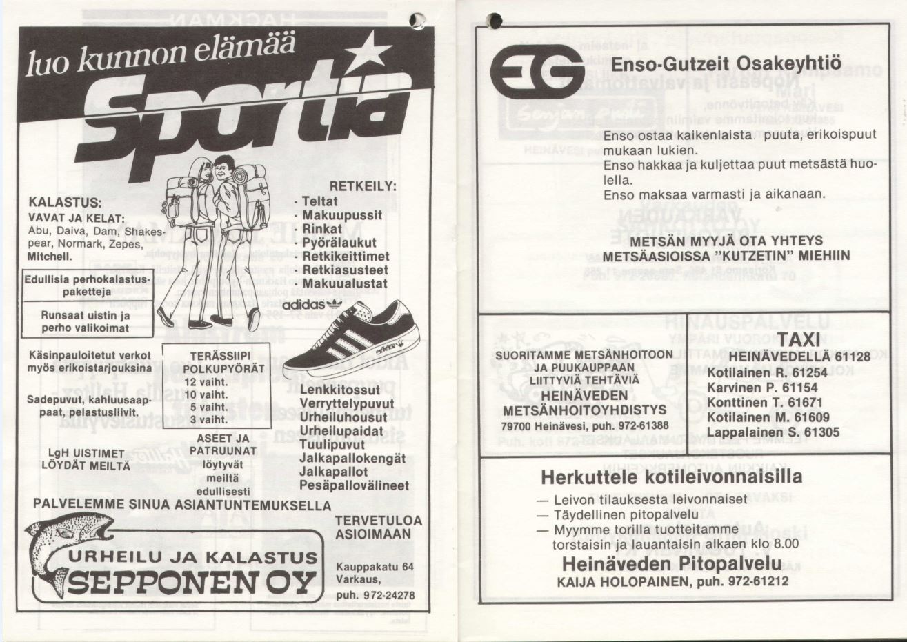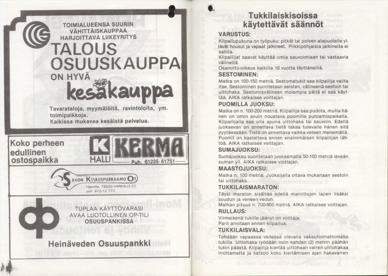Heinäveden kunnan puolesta toivotan Teidät kaikki, niin kilpailijat, yleisön kuin toimitsijat, tervetulleiksi tänne Heinäveden Karvioon, kauniin kosken partaalle, seuraamaan reippaitten miesten soukeaa leikkiä pölkyn päällä kohisevien kuohujen pärskeessä.