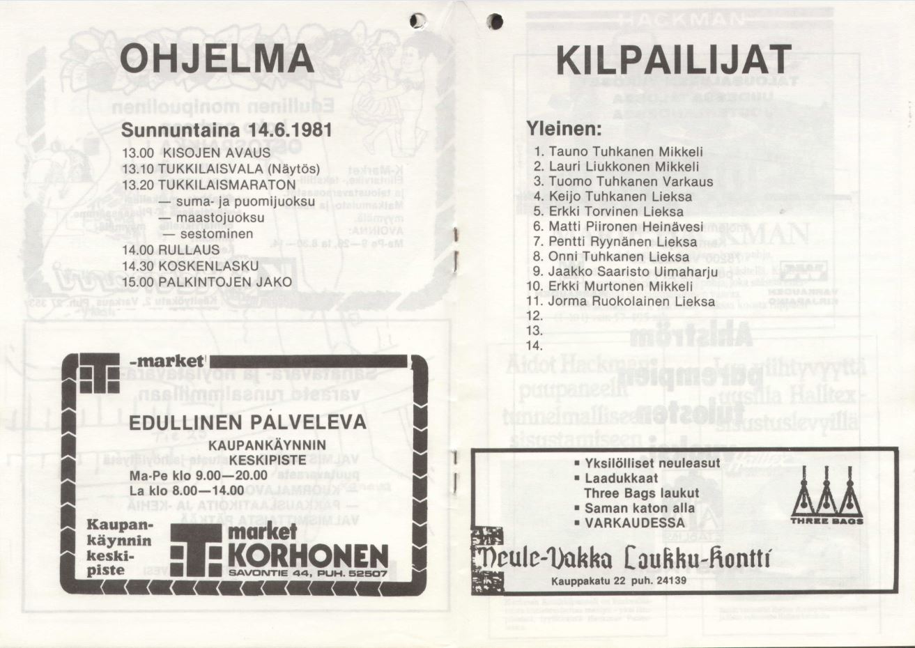 Tukkilaiskilpailut Heinäveden Karvionkoskella 14.6.1981