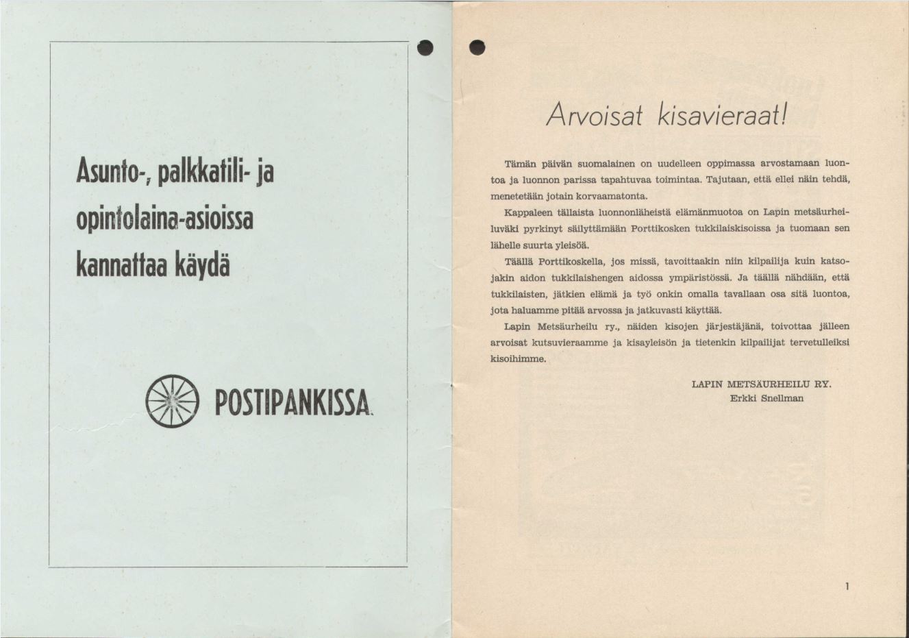 PORTTIKOSKEN TUKKILAISKISOJEN OHJELMA 1970