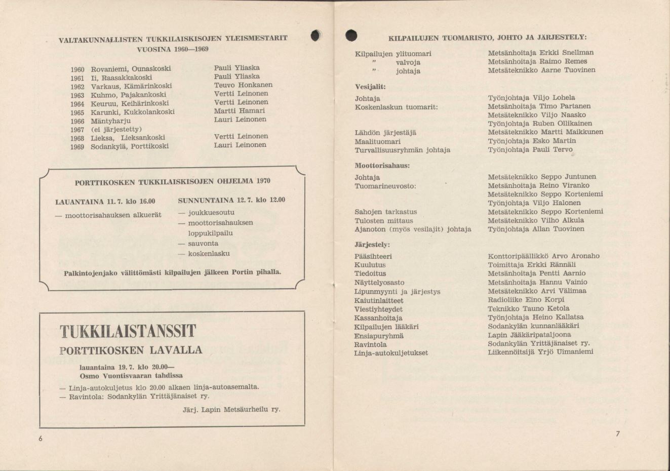 Tukkilaiskisat Sodankylä Porttikoski 11. -12.7.1970
